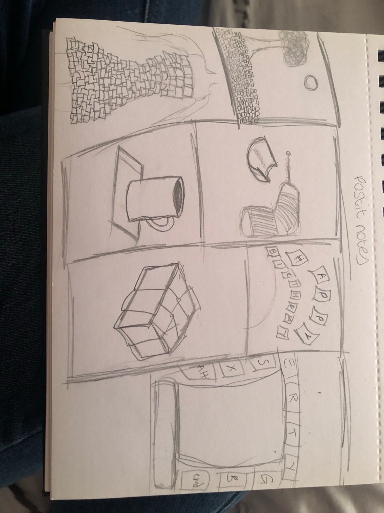 For this exercise i wanted to try a similar principle to Simon Bonds 101 Uses for a Dead Cat by picking something simple and used in one way to come up with as many different ways as possible. I used google to have a look at 101 uses for a Dead Cat just to get some idea. I then got inspiration from items on my desk so post-it note pad, elastic bands, paper clips etc. So i went for the one i came up with the most ideas to use in 5 minutes and that was post-it notes.