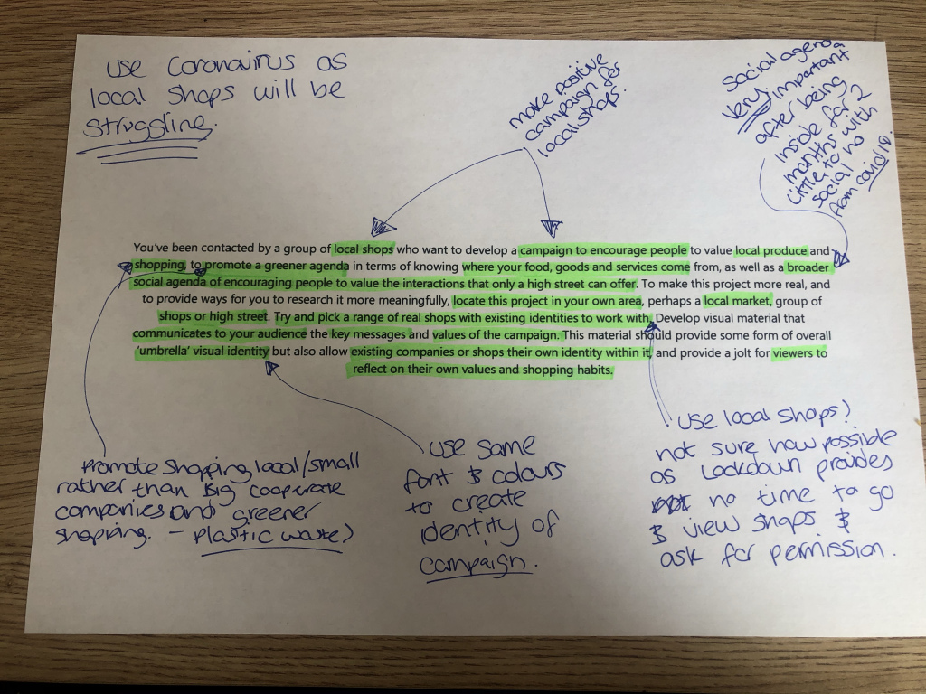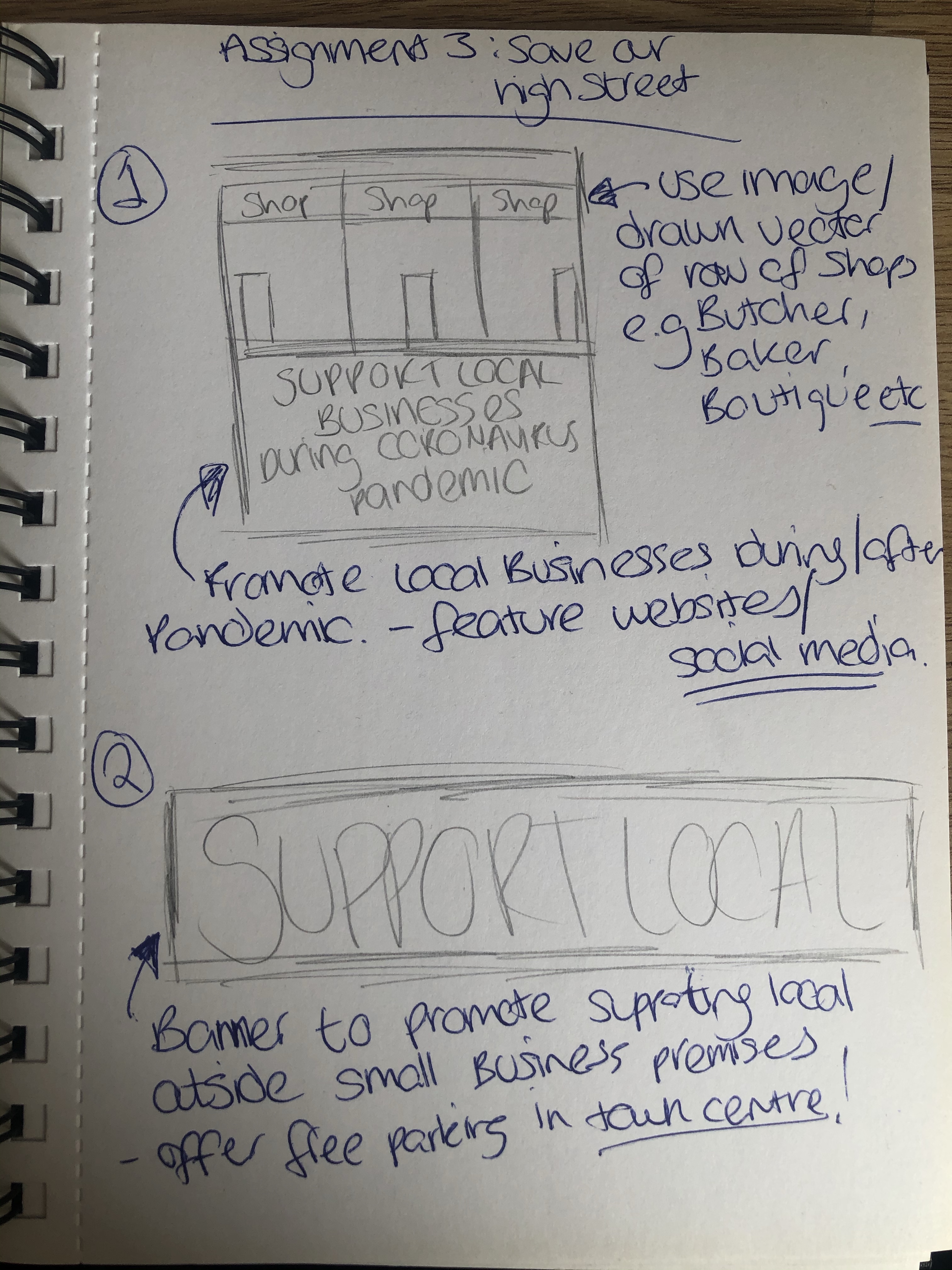 I don’t think this assignment could have come at a poignant time as the world battles coronavirus our small businesses have been forced to close and when they reopen will be struggling as a result. So coming up with a campaign for this will be perfect as i can use the current situation to promote us using local business rather than big companies that have profited from the outbreak.