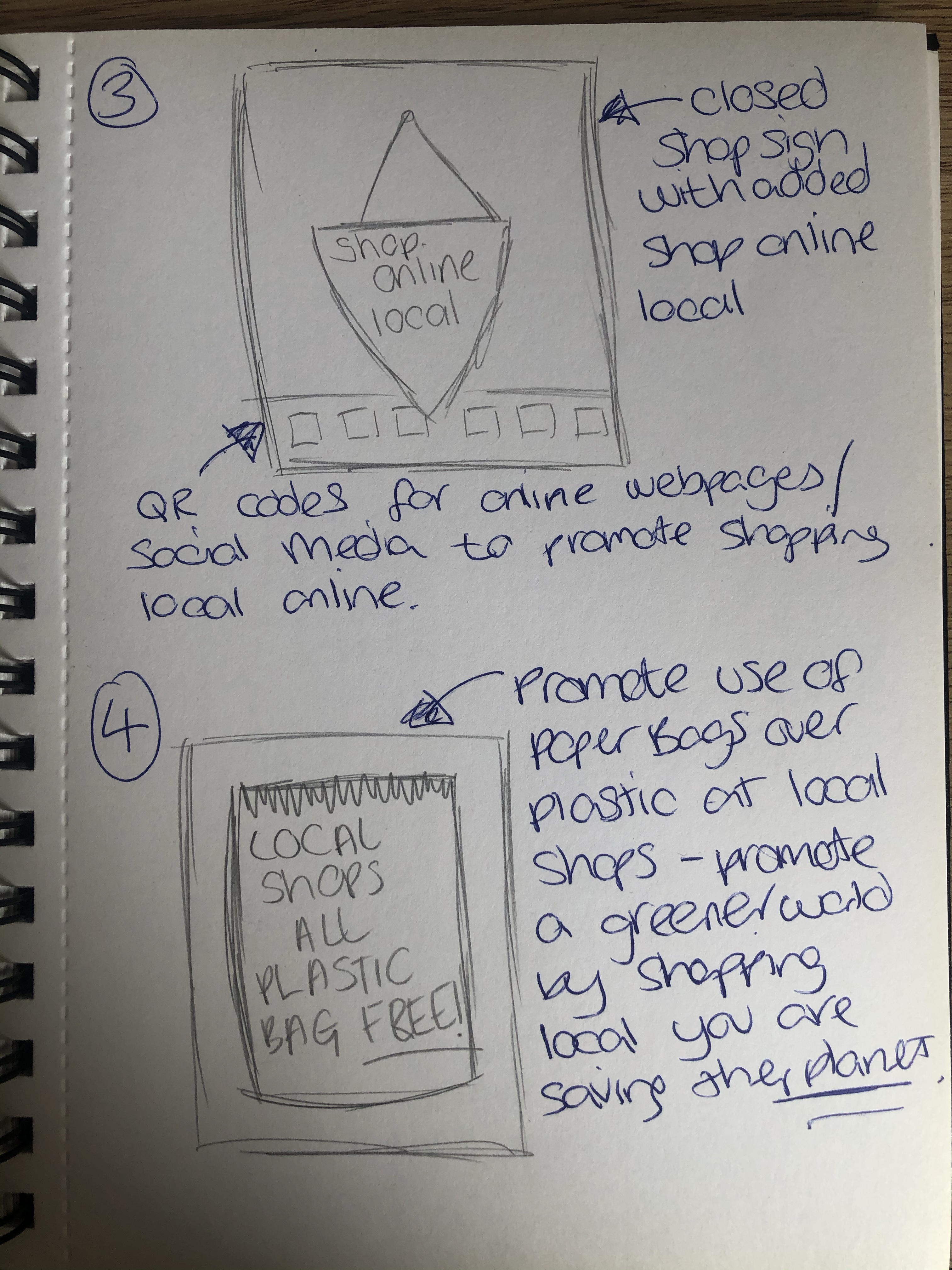 Overall the campaign looks very good the imagery is consistent and nice and clear, my favourite is probably the idea of using paper bags. The environment is such an issue and with everyone being inside as a result of the coronavirus outbreak the environment has been much better off for it. Maybe this is just what we need to kick us into action and treat our world better. The campaign mainly focusing on the support of local business works really well however re-reading through the brief i should have included a bit more information about the idea of using local produce rather than things that have been imported like in big businesses. But i wanted to focus more on the fact that after this pandemic is over our small and local businesses will be struggling and there is undoubtedly going to be a lot of business closures and a huge recession. I wanted to keep the design as simple as possible as too much information on a poster or banner can often get lost. Banners especially as we often see them while driving, small text and lots of it won’t get seen. Keeping the message brief and to the point seems like a sure way to attract attention. The posters have more artistic use but again simple and basic messaging. The closed shops for example send a negative message, if we the consumer don’t help small and local businesses they will close. It is our responsibility to keep local businesses going during this crisis and after.