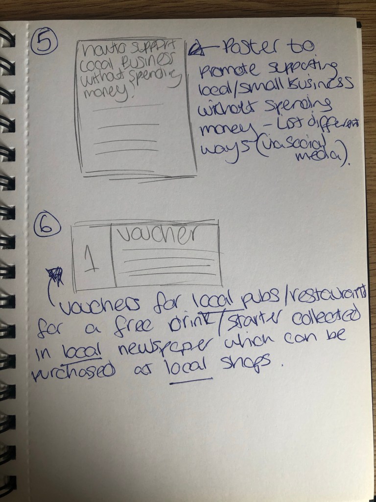 I started off by doing some sketches of rough ideas in my sketchbook see below. I have used various methods of promotion from posters and banners to vouchers. I want to use a variety of these in my final as i feel the more methods i use the more successful this could be for small businesses.