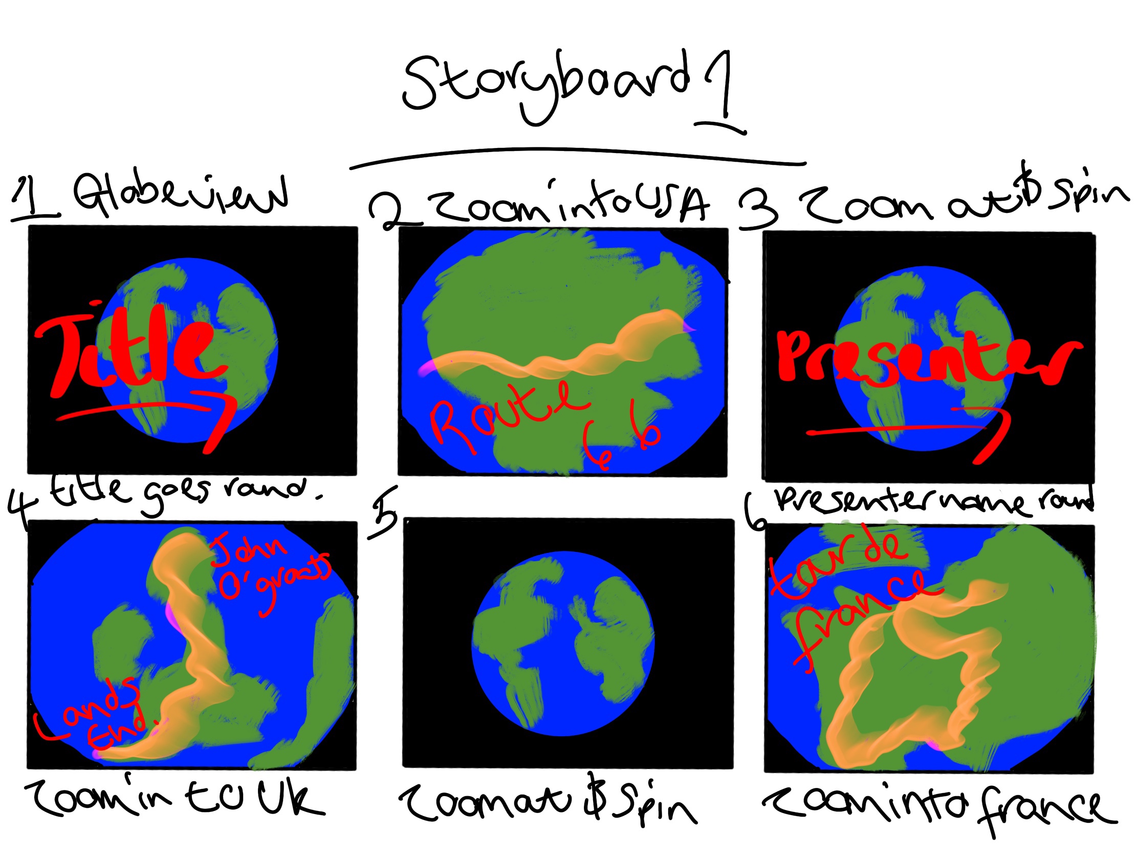 I came up with the above using the idea of travelling the globe and showing the routes that will be taken across each country. while including the title of the programme and the presenter. The use of colour is bright and eye catching while also keeping very simple and to the point.