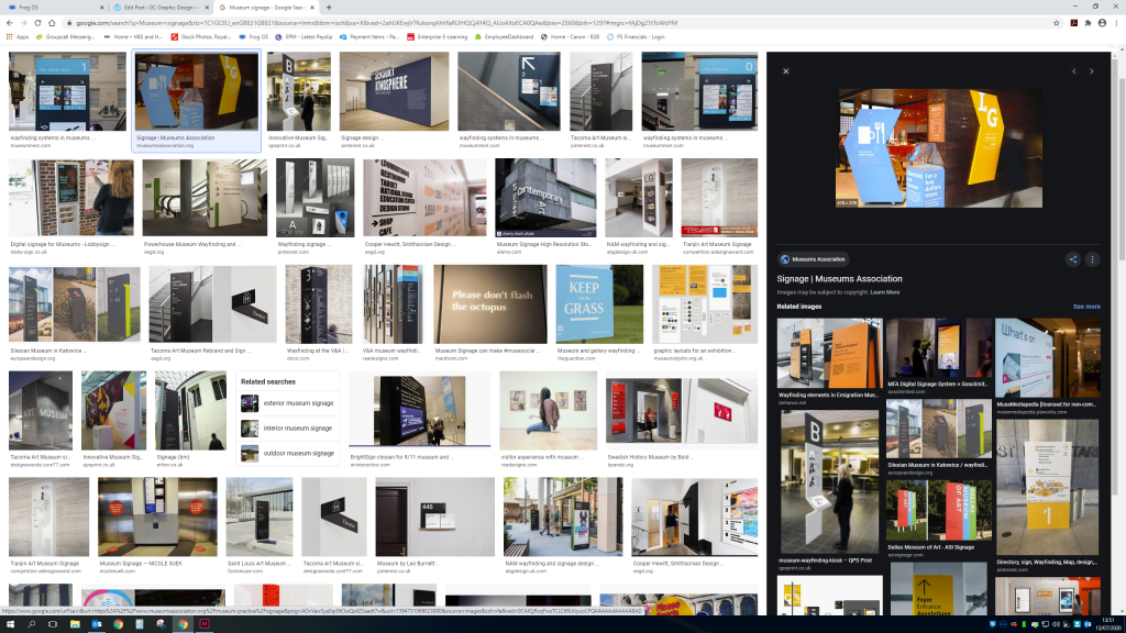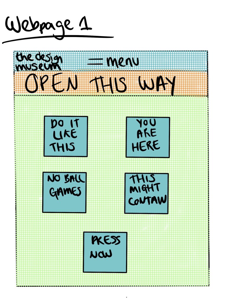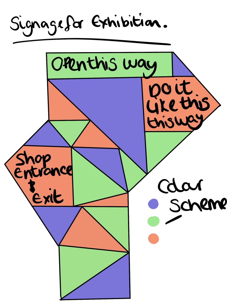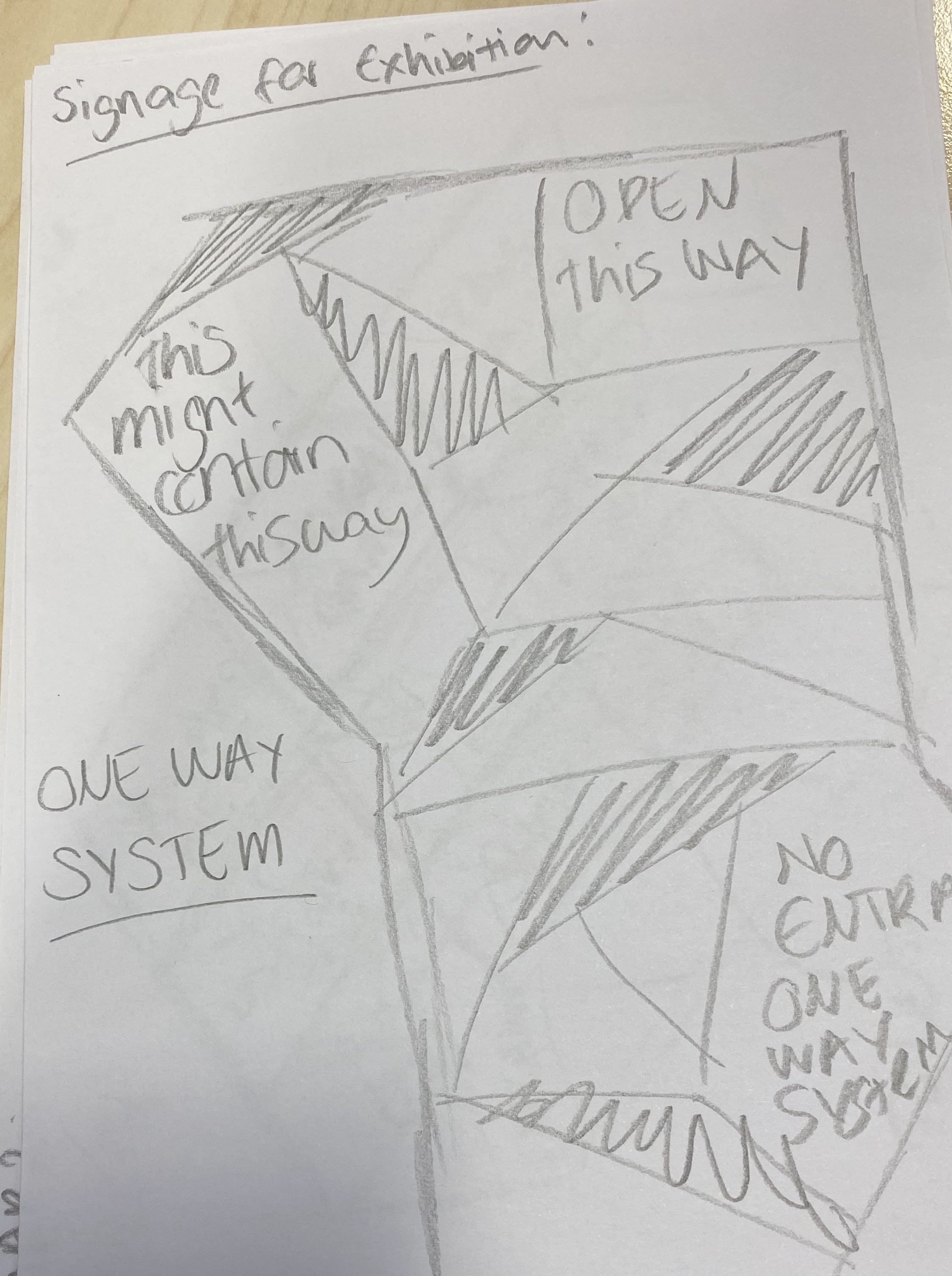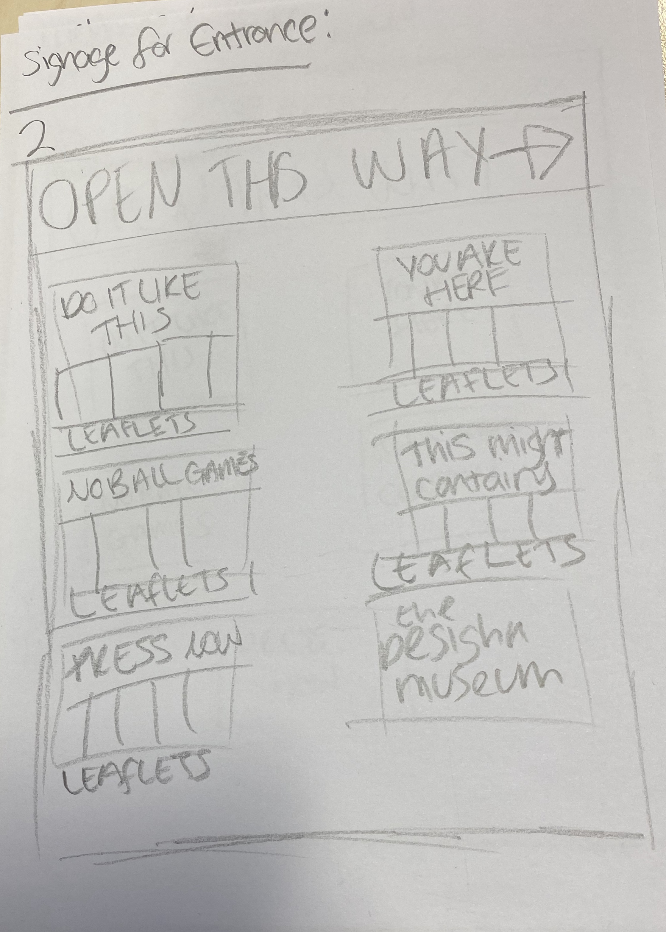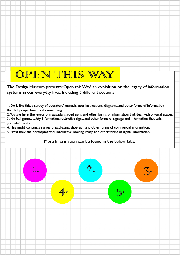 The overall look of the exhibition works really well, coinciding the colour scheme, font and general look together with the already put in place design taken from my research. Looking at the features i would probably add more information if i was to repeat the task as the information is very minimal but as i imagine this exhibit will not be free, its good to keep the mystery about the exhibit to encourage people to attend. I wanted to keep with a one way system for the map as i believe this is what would take place now due to current restrictions from the coronavirus global pandemic. I also feel it would add a level of structure to the exhibit which seems fitting given the nature and the title ‘Open this way’.
