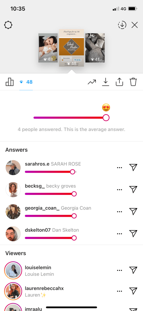 I asked my audience to simply view both designs and then vote as to which they prefer, the first or the second. The overwhelming majority voted for the first design created in Adobe Illustrator. I am assuming this is because the care and detail in the design is more than the design created in Instagram. I have created a pro’s and con’s list for both features to determine what would be best for engagement with an audience.