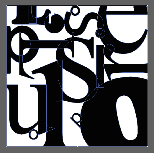 I started this exercise of with illustrator using a square page with 4 different randomly selected fonts before then vectoring each sets so I could see the different outlines on each font, specifically the difference between sans serif and serif style fonts how much more detail is in sans serif styles to get the right curvature compared to serif styles which are more traditional simple line style.